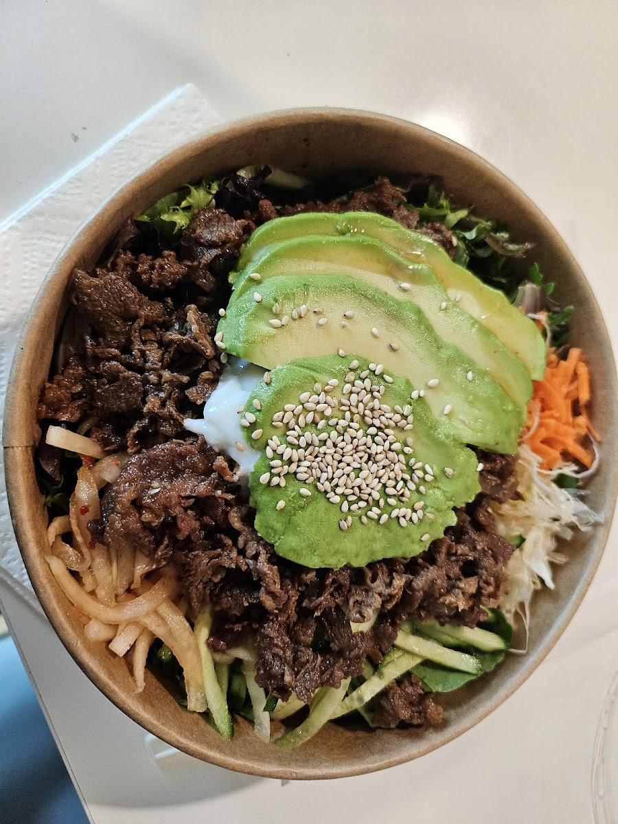 The menu leans into rice bowls that balance protein, texture, and seasoning in a way that feels both filling and familiar. One of the standout options is the Spicy Chicken Bibimbap, which brings heat without overwhelming the dish. The layers of rice and chicken come together smoothly, making every bite consistent and comforting. Just as popular, the Bulgogi Beef Bowl delivers a rich, savory profile that pairs well with the fluffy rice base, creating a meal that feels complete rather than rushed.
